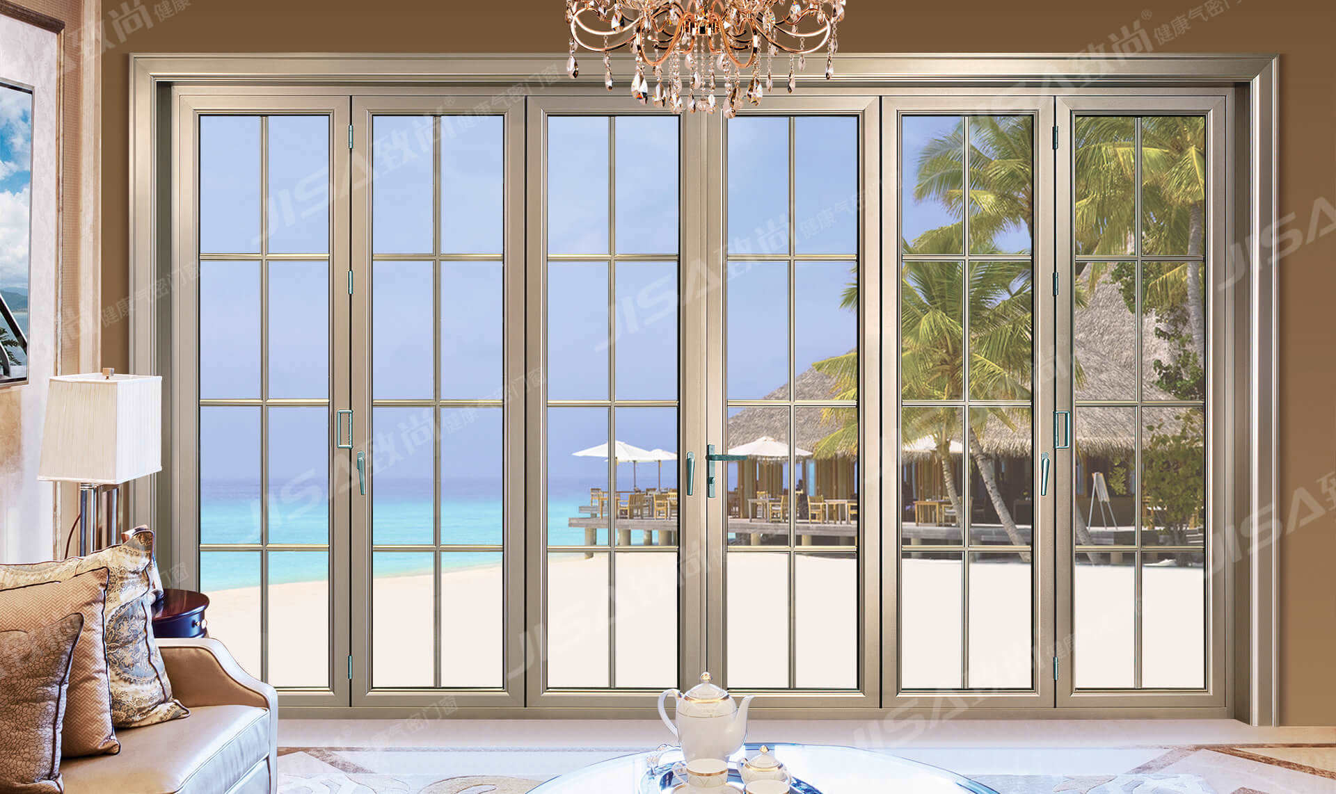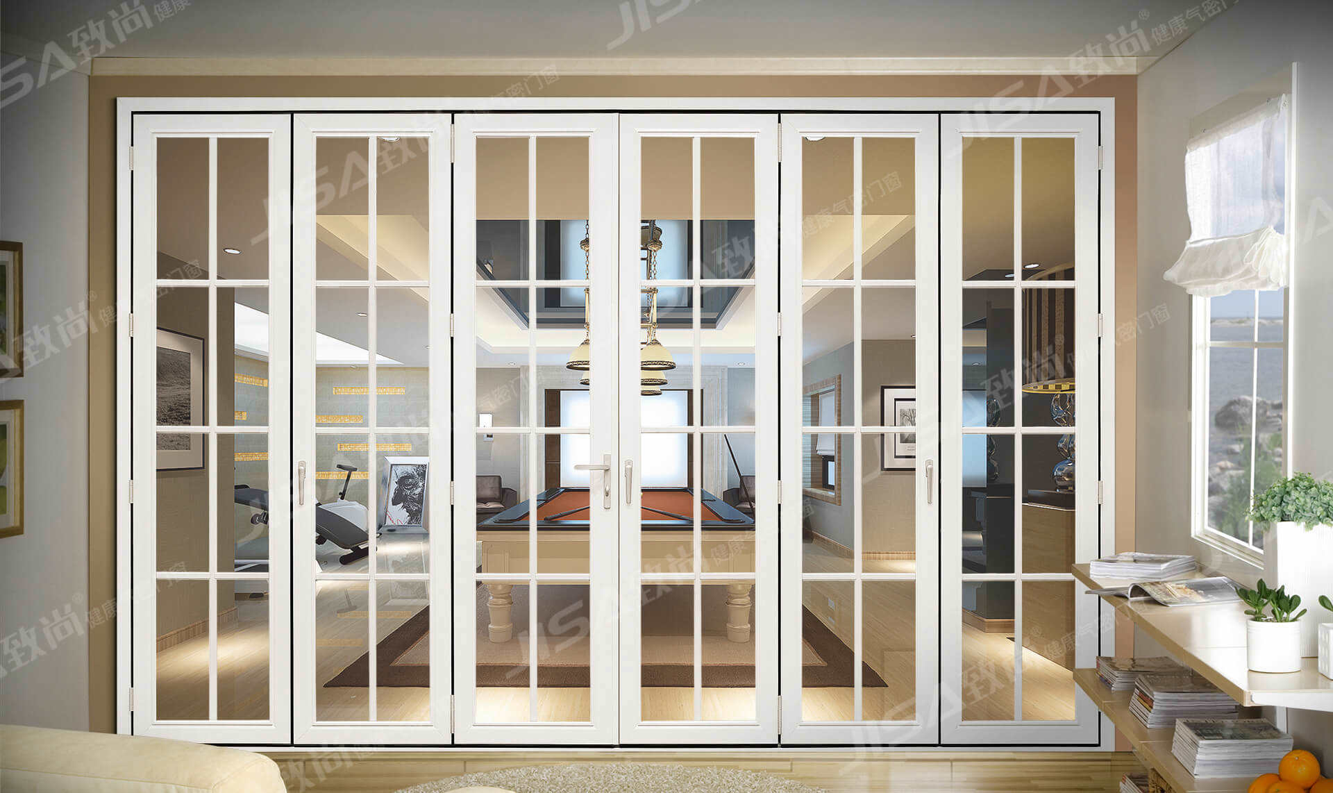 大折疊門與空間巧妙結合,更大的空間視野,滑軌鎖控精密高,里表如一高大上
